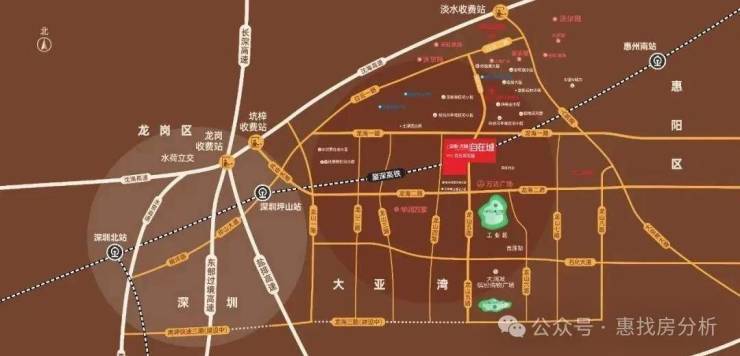 四大高速,深惠同城:沿海高速、惠大高速、深汕高速、东部过境高速(建设中),实现与深圳无缝对接;