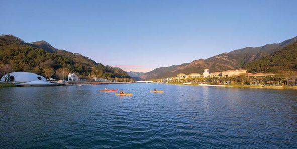项目拥有的8.5平方公里山谷溪流资源,独享6.5公里连绵山脉,背靠7500公顷大桂山自然保护区,森林覆盖率达95%,负氧离子含量达到65000/m³(约为长寿巴马村6倍),毗邻岭南第一大湖-万绿湖(国家级4A级旅游区万绿湖风景区,蓄水总量139亿立方米,内有360多个绿岛),坐拥径背,老炉下两座自然水库,水质达国家地表一类饮用水标准,下游埔前河在园区延绵10公里,小镇围绕河流打造一河两岸的独特景观生活带。