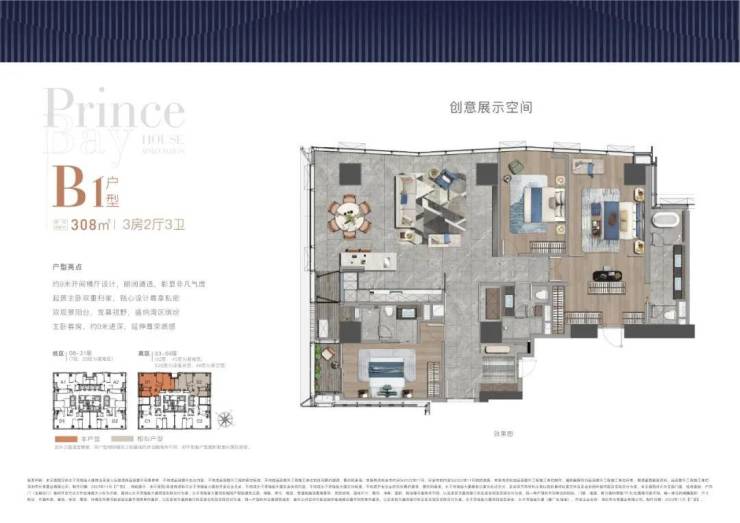 户型建筑面积:约215-308-415㎡山海大平层