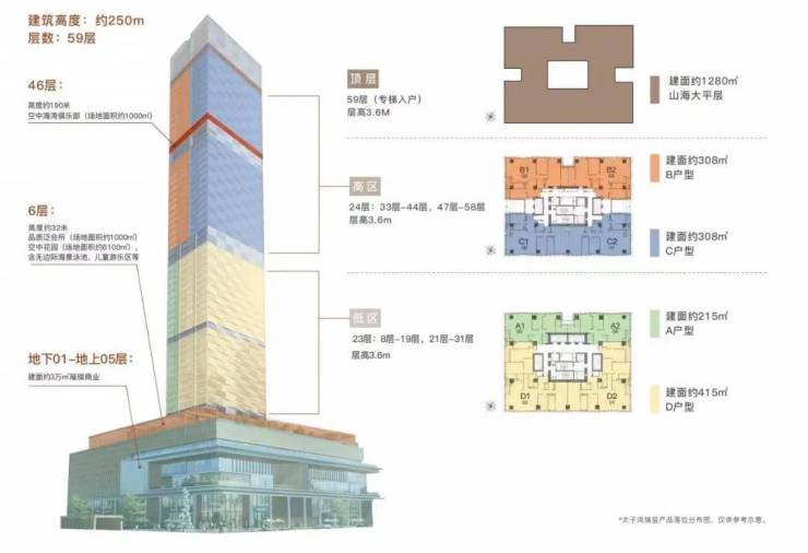 建筑总层数:地下01-地上05层为商业、地上08-59层为品质公寓