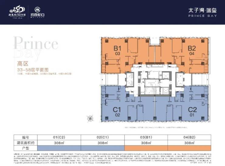 户型分布在高区33-47层,4个户型朝向,也可以两套打通做620㎡大户型,东南跟西南主要看海景,西北跟东北斗可以看部分海景+大小南山景观