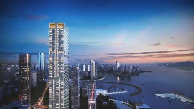 屹立滨海的高约250米建筑天际线