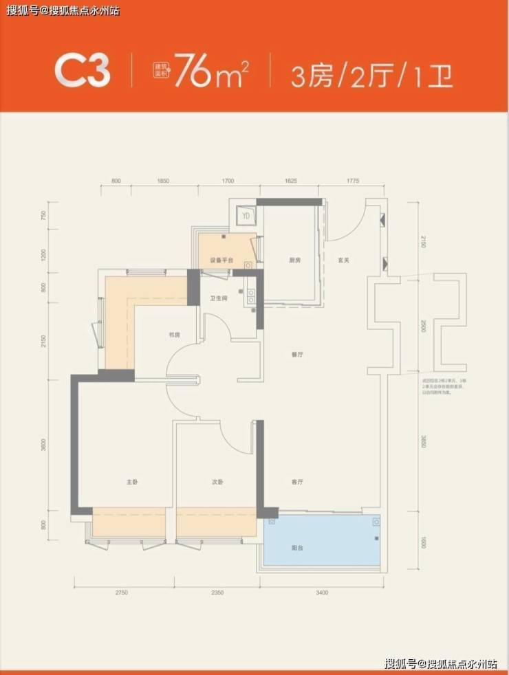 76㎡的3房2厅1卫,折后总价186-214万/套,单价2.43-2.82万/㎡。