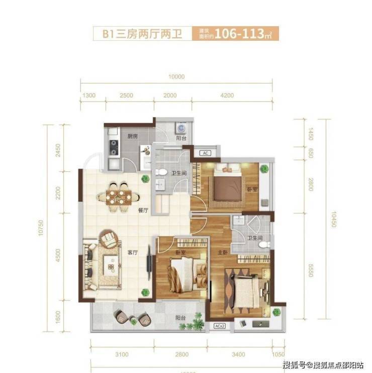 必买理由;布局精妙彰显便利体贴;客厅餐厅一体化,兼顾多样功能;灵活空间,双阳台奢阔设计。B1户型:106-113㎡三房两厅两卫
