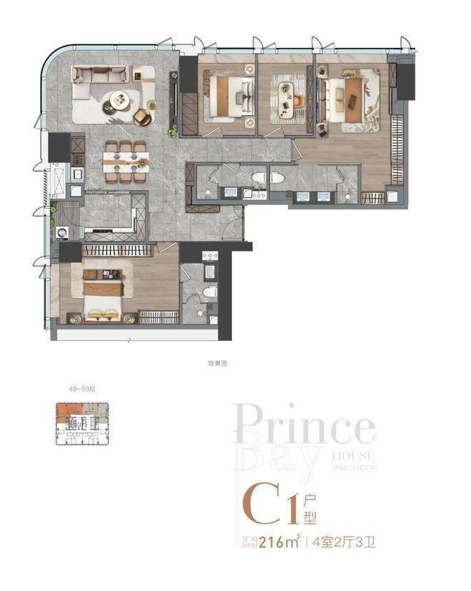 全户型纵享环幕视野。项目打造主力建面约215-415㎡纯粹品质公寓共191席,顶层为建面约1270㎡公寓产品。