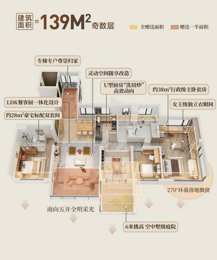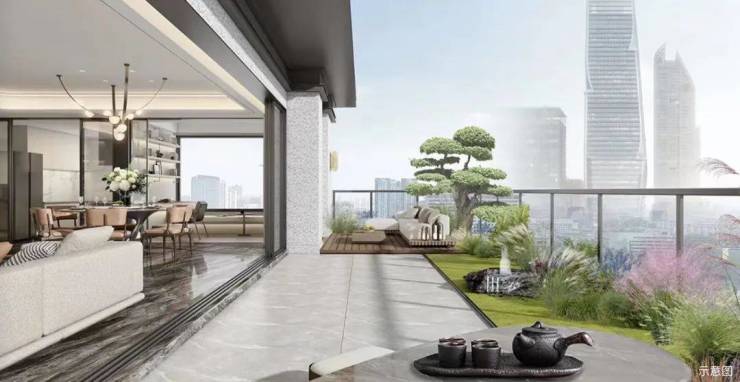 更值得一提的是,在偶数层,长辈套房直连南向约6米挑空庭院: