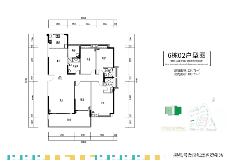 在售的6栋,两梯两户,建面约219-235㎡四房大平层户型。