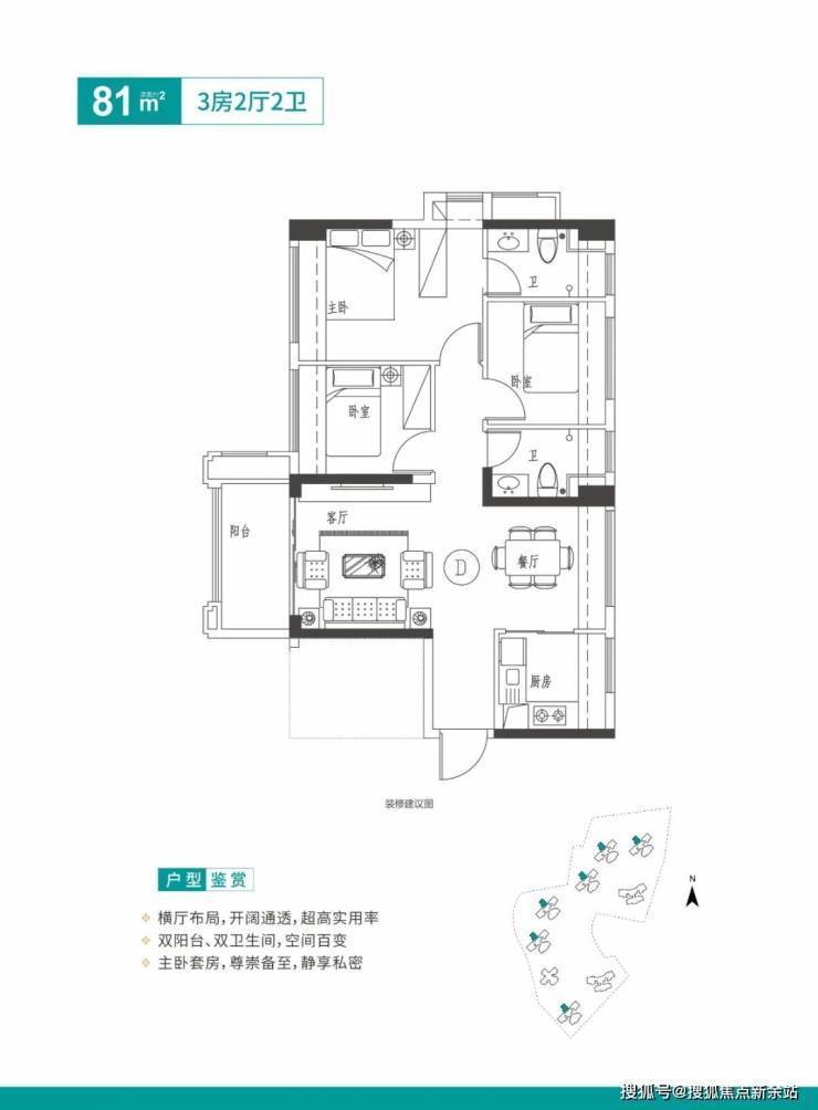 【超100%得房率】在售高层约81-129㎡四-五房,空间尺度舒适,采光优越,拓展面积和使用率极高,是目前市场上绝无仅有的稀缺户型;