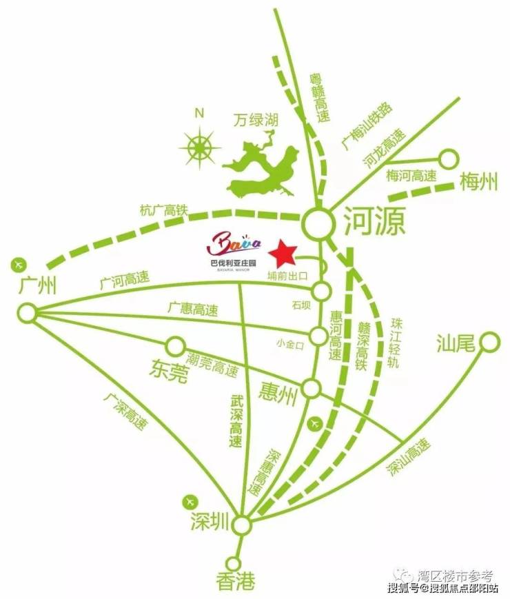 河源巴伐利亚庄园交通配套便利,立体交通,轻松融入深港穗半小时生活圈。广河高速、济广高速、潮莞高速、沿海高速、沈海高速,五大高速与庄园近在咫尺,庄园距埔前高速出口仅500米,全程高速2小时内通达惠州、广州、深圳、香港;赣深高铁、杭广高铁在河源并轨通过,开通后深圳到河源仅需28分钟。