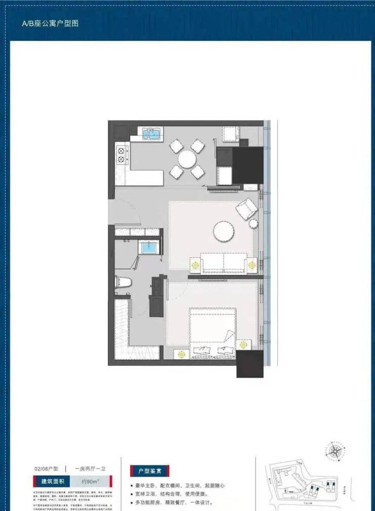 公寓90平户型一房一卫: