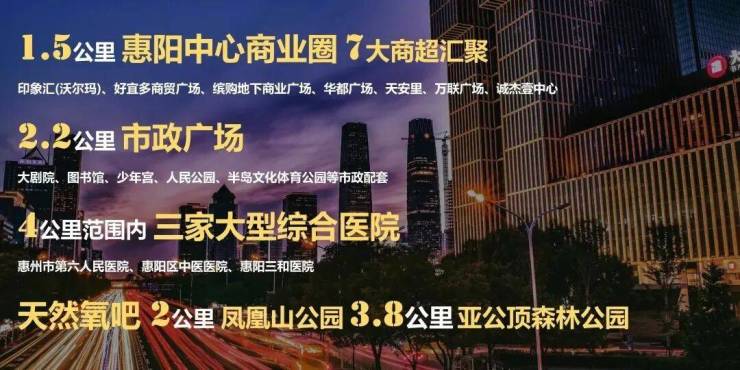 3.9公里直达区政府,近揽惠阳中心商圈七大商超环伺;惠州第六人医、惠阳中医医院、三和医院近在咫尺,健康有“医”靠。自有幼儿园,划分片区九年一贯制公立惠阳竹贤学校,实现一站式教育。