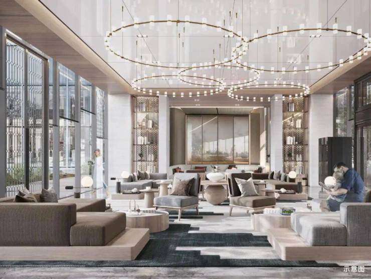三归家大堂,打造地下入库大堂、首层礼宾大堂、空中大堂的三重立体大堂,其中考虑到了大部分业主私家车出行,地下入库大堂不仅重仪式感,还从根源处做到车库的降热降噪,给业主打造舒适、气派入户体验。