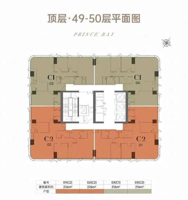 •建筑形态:194米超高层塔楼,共50层,分为低区(9-38层)、高区(39-48层)及顶层(49-50层),梯户比从低区4梯8户到顶层4梯4户逐级优化。