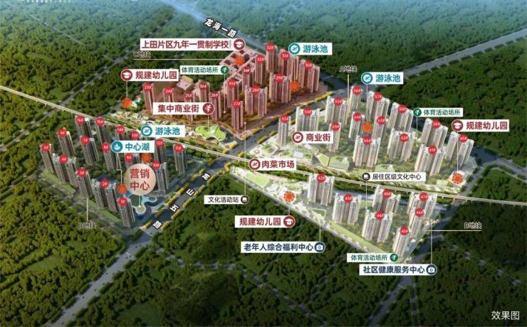 商业配套:龙山五路连接东华大道一路直达天虹、壹中心等构建的区府商圈,约2公里至大亚湾万达广场,项目内自带约8.36万平的风情商业街,目前开业的商业有沙县小吃,中国电信,国美电器,万家LIFE生活超市,南北药行,苏宁超市,京东家电等,而且肯德基也开业了,2期和3期还会建设两个大型商业综合体。以后家门口下楼就可享受吃喝玩乐购于一体。另外3期南侧也就是4期目前还在建设一个大型的市政规划肉菜市场。