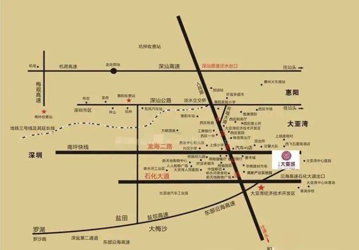 购物配套:大亚湾最大购物广场万达广场、最齐全商场大润发、品质天虹购物广场、最便民西区新鲜农贸市场