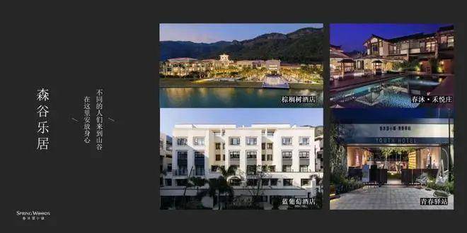 小镇内不仅可参与游船、皮划艇、高尔夫、溯溪越野、竹筏漂流等,还可参加每周举办的篝火、烟花和音乐节等主题活动,更可观展、阅览...生活在此有无限可能。