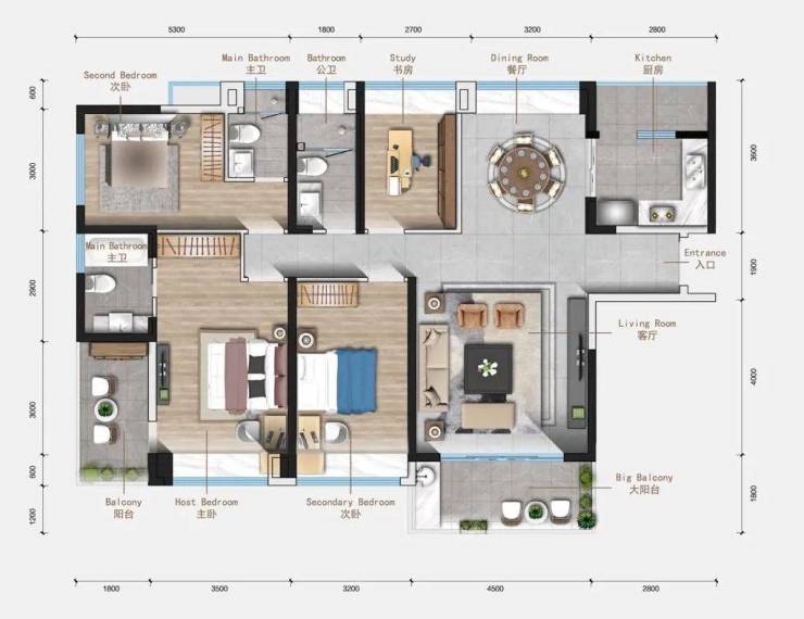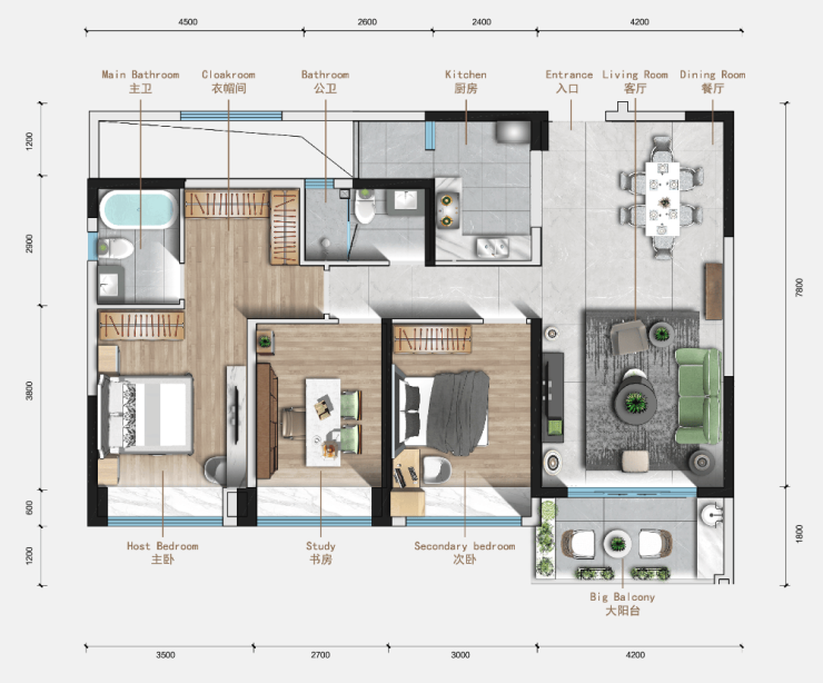 3.5m开间主卧套房,带独立衣帽间,私密性好