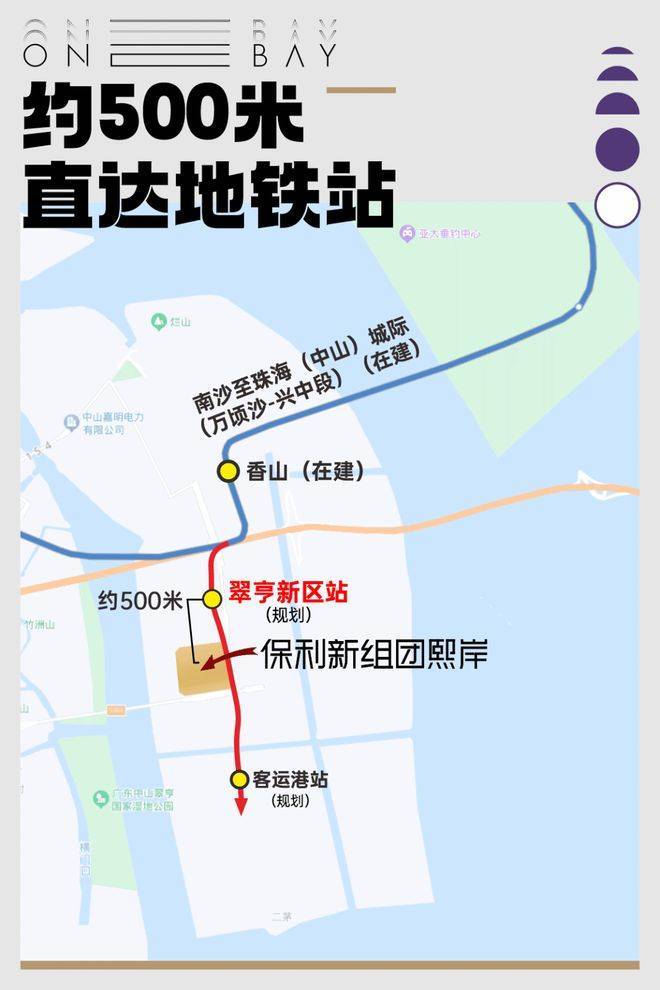②近地铁:项目距广州18号地铁线翠亨新区站仅约500M,是岛上离地铁站最近的项目,三站到广州番禺!