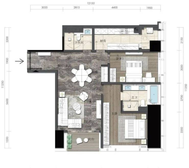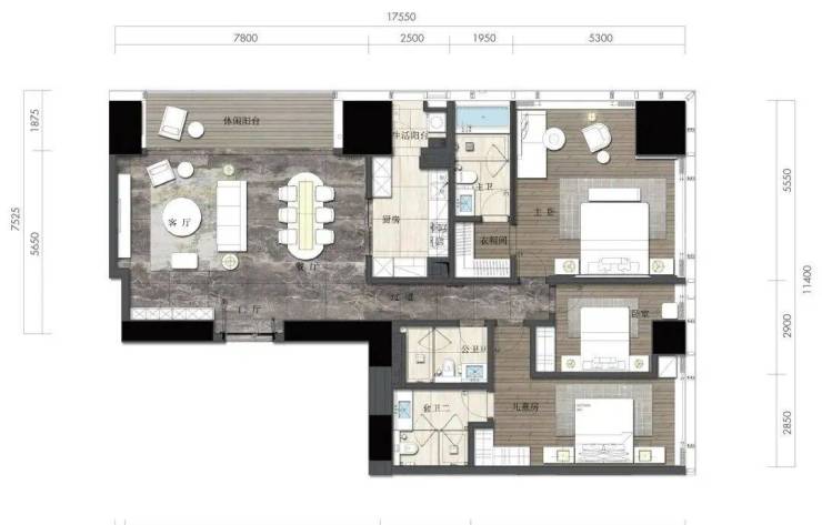 约164㎡2房2厅2卫(独立入户玄关,动静分离,约33㎡豪华主卧,承载品质生活)