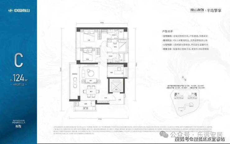 C户型:124㎡4房2厅2卫