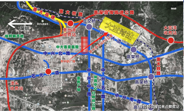 项目坐拥深大城际大亚湾站,距惠州南站约十多分钟车程,多维交通便捷出行,深惠双城一站直达,两个红绿灯直上澳头收费站,高铁直达广深港。