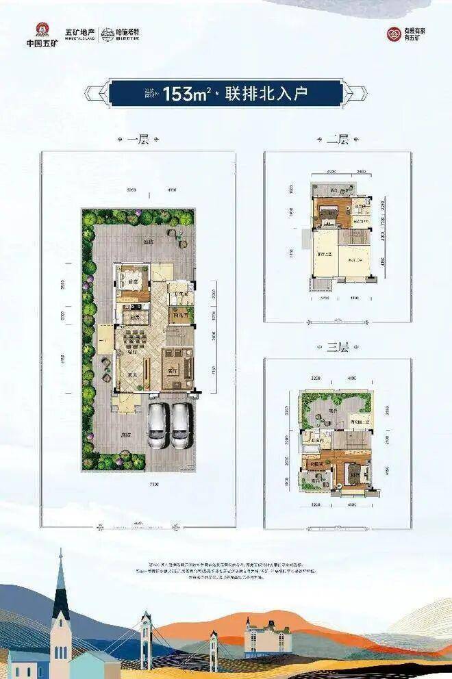 建筑面积约153㎡联排别墅户型鉴赏