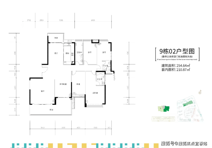 9栋,两梯两户,建面约255-259㎡五房大平层户型。