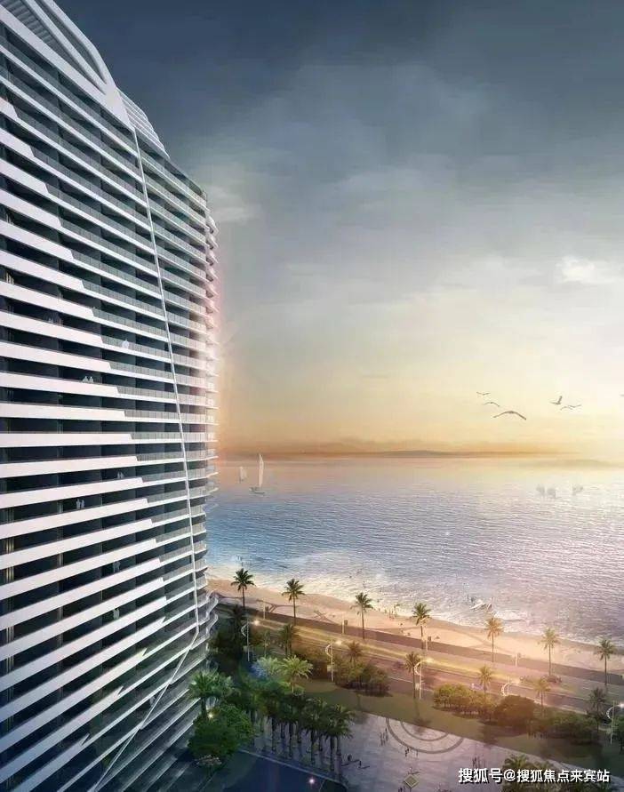 1)前广场为抬高式园林,无遮挡南向看海,也正是由此,楼栋整体抬高20米,1楼即其他项目7楼,看海面绝佳;楼体外立面白、灰两色为主色调,同时通过璃栏板质感变化,突出建筑的通透感,勾勒出波浪形阳台造型,将整个楼体呈现出“船帆”的造型;