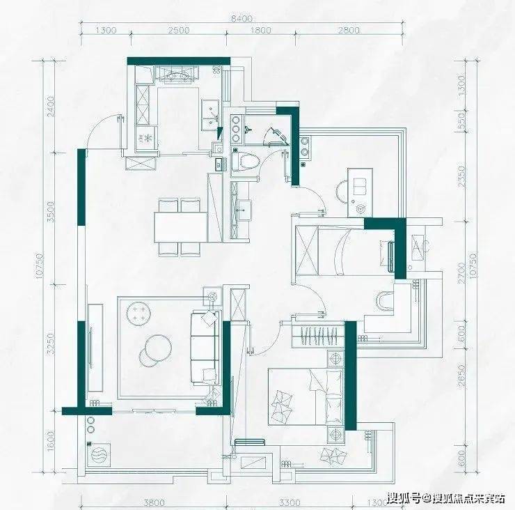 B1户型:106-113㎡三房两厅两卫