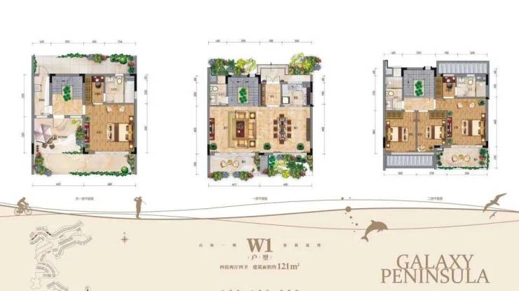 121㎡联排W户型 大面宽,阳台景观无限!