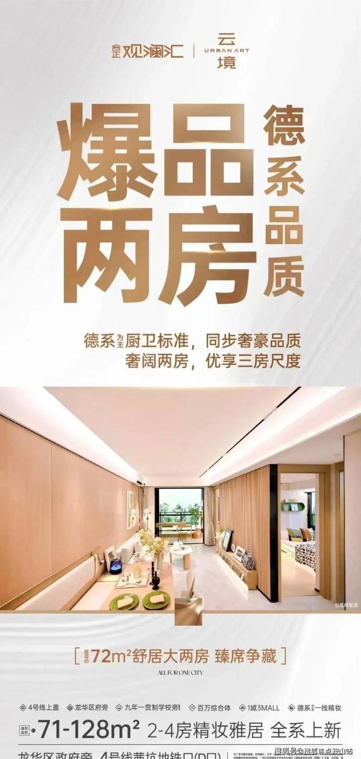 龙华观澜百万大盘【合正观澜汇三期◆观澜汇云境】推出2栋和4栋一、二单元,面积72-75㎡两房一卫,89㎡三房一卫,105㎡三房两卫和125㎡四房两卫,共617套,交房时间预计2026年12月31日,精装修交付