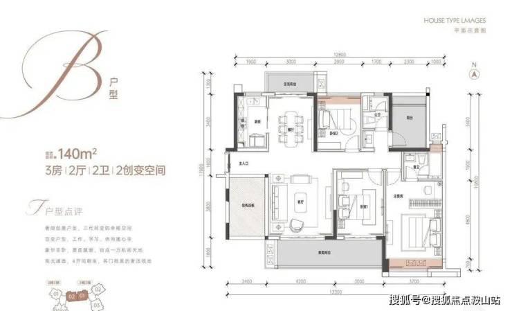 2栋1梯:103/128/140m户型;2栋2梯为两梯三户设计,有约140/172m户型,共计127套房源。(精装)