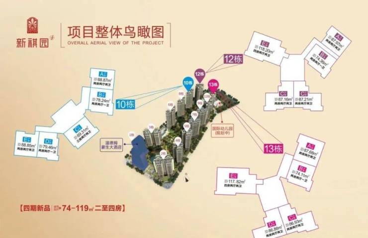 推售产品:四期10、12、13栋(74-118㎡园景美宅)