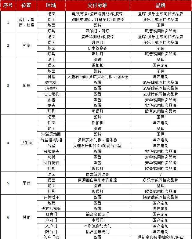 【室内装修工程交楼标准品牌及条件】