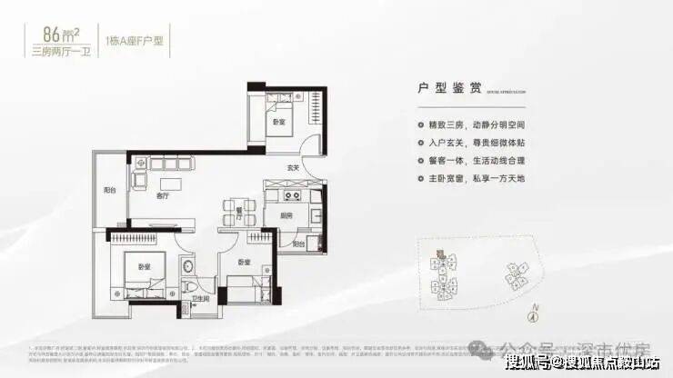 84㎡的3房2厅1卫,折后总价186万起折后单价2.2/m²起。