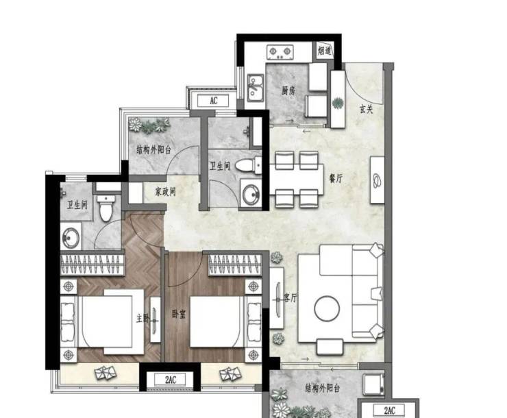 建面约100㎡ 三房两厅两卫
