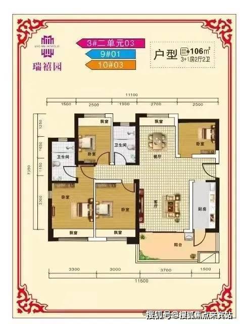【在售户型】82-133平两房到五房,两梯四户格局,