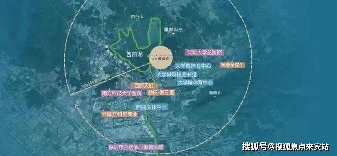 北面举步一线西丽湖,观浩淼湖水一碧如镜;南观大学城人文景观,一览无余;