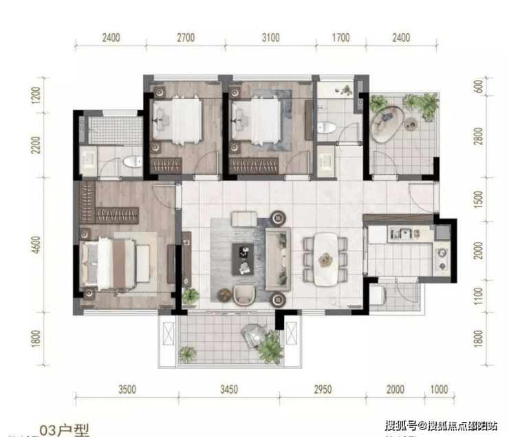 建面约108㎡3+1房2厅2卫(横厅户型)