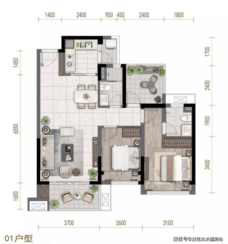 【横厅户型】:横厅设计户型方正采光面更宽阔,住宅更加通透、餐客厅一体化动线分明、减少走道面积,空间利用率高。