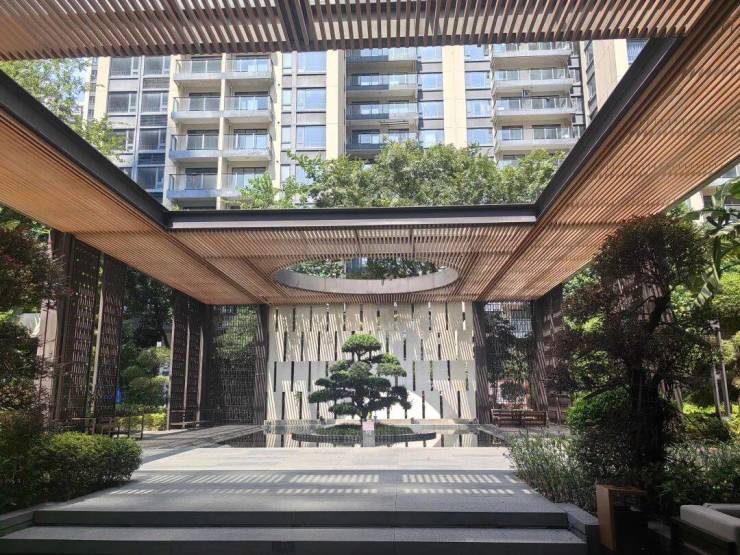 双层中空隔音的“中航特玻”,商业裙楼、广场、园林人行道全石材打造。