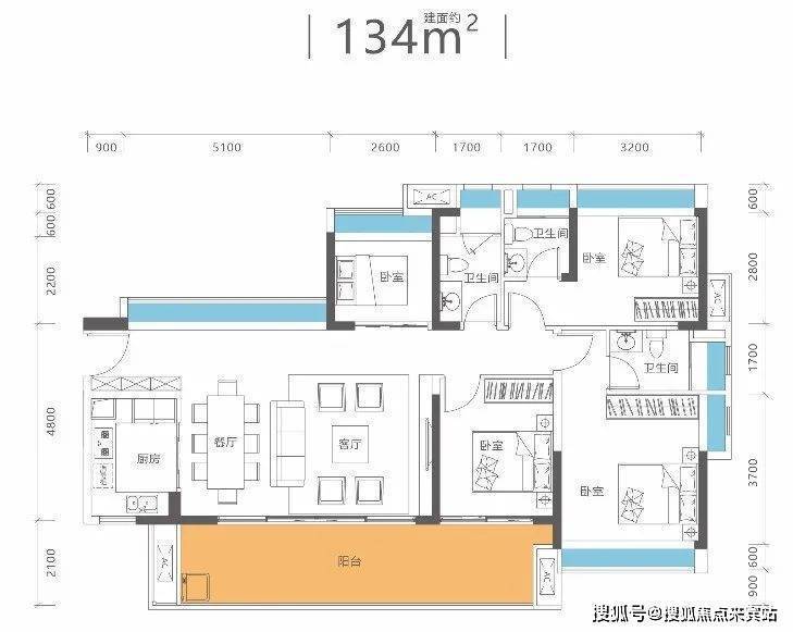 121平4房2卫,折后总价大概145万,首付22万,月供5400左右