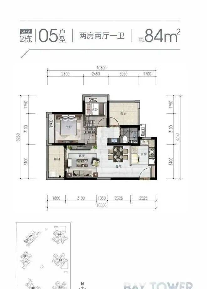 (1)119㎡三室两厅一卫(G83户型):户型方正,动静分离,采光充足。
