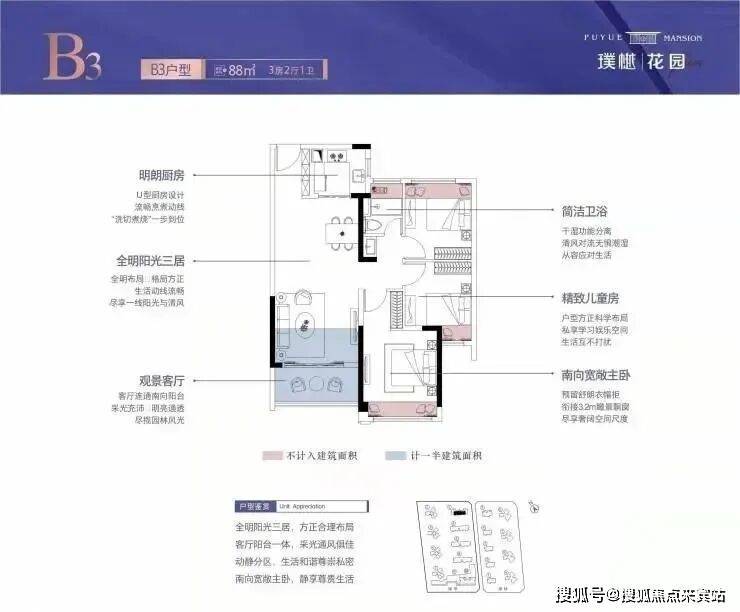 2. 板式全明阳光三居,南向舒阔阳台,风光四季尽览