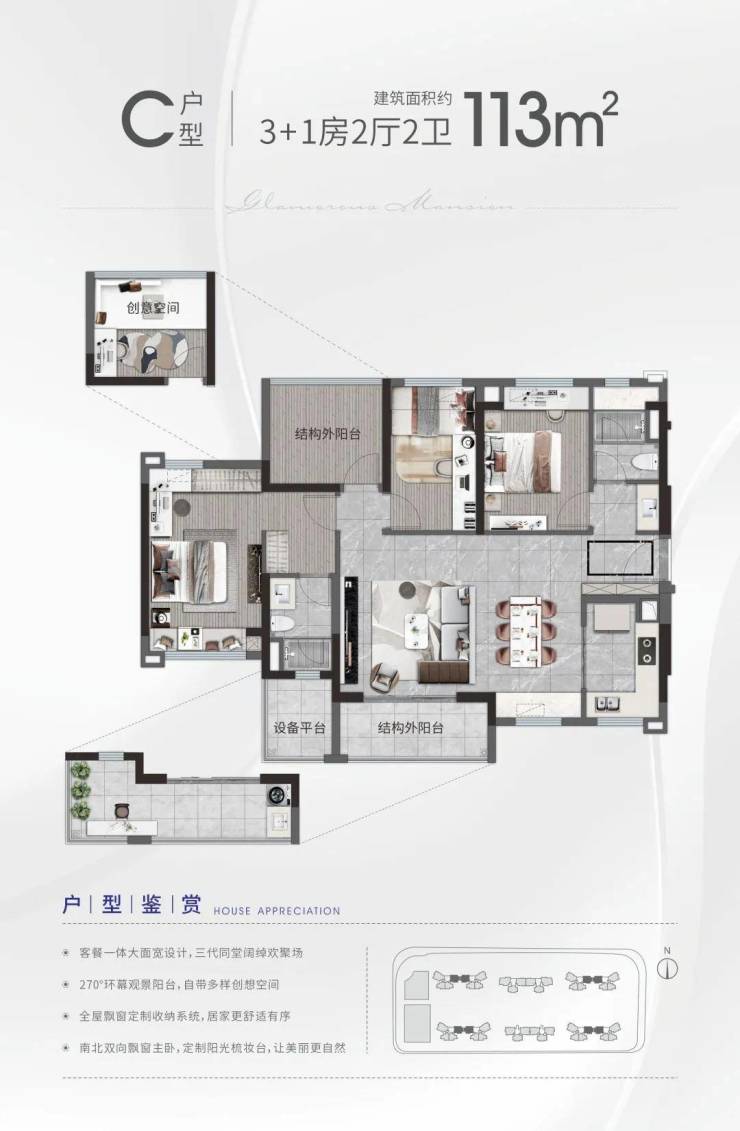 在户型设计上,越秀建发玺樾展现出了极高的创新性与实用性。特别是其127平方米的五房设计,在同类产品中极为罕见,充分满足了现代家庭对于空间多样性和私密性的需求。该户型亮点纷呈: