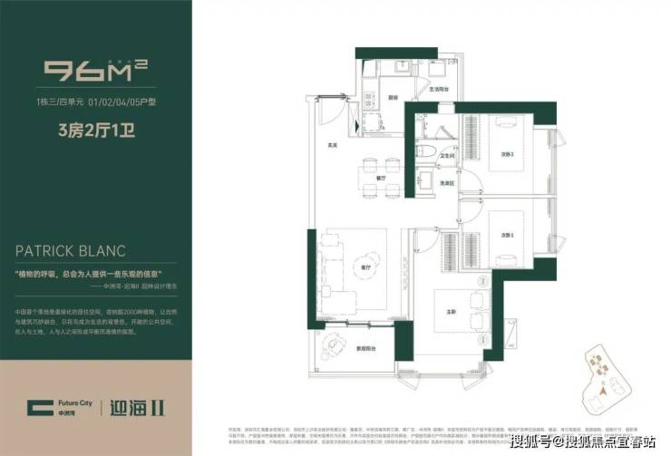 本次开盘共两个单元,楼体朝向东南,不仅可以远观海景,近处还可以俯瞰与一期围合成的社区绿地。大部分户型朝向东南,少数户型朝东北。其中,96㎡的三房一卫是本次的主力户型,预计有372套;109㎡的户型预计95套;125㎡的户型共有93套。