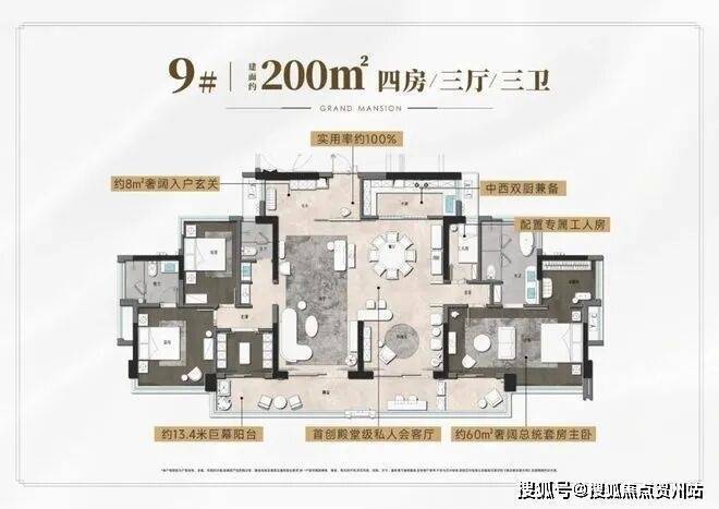 建面约200㎡大平层,堪称“终极豪宅”的王牌作品,完全0过道,实用率100%,比深圳湾1号的大平层还有高(普遍只有80%-85%),也更能感受到大开大合的大宅气场。