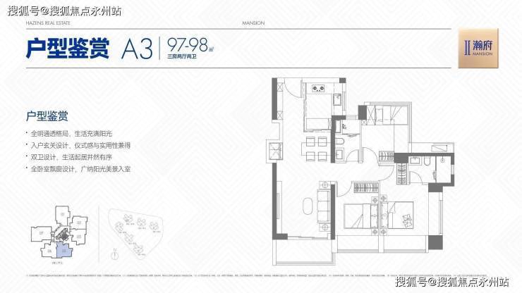 96-98㎡3房2厅2卫03/05/06(A2/A3)户型,设计的是经典竖厅三开间朝南格局,客厅3.5米开间,LDKB一体化,S墙设计预留冰箱卡槽位,主卧+1个次卧双飘窗。