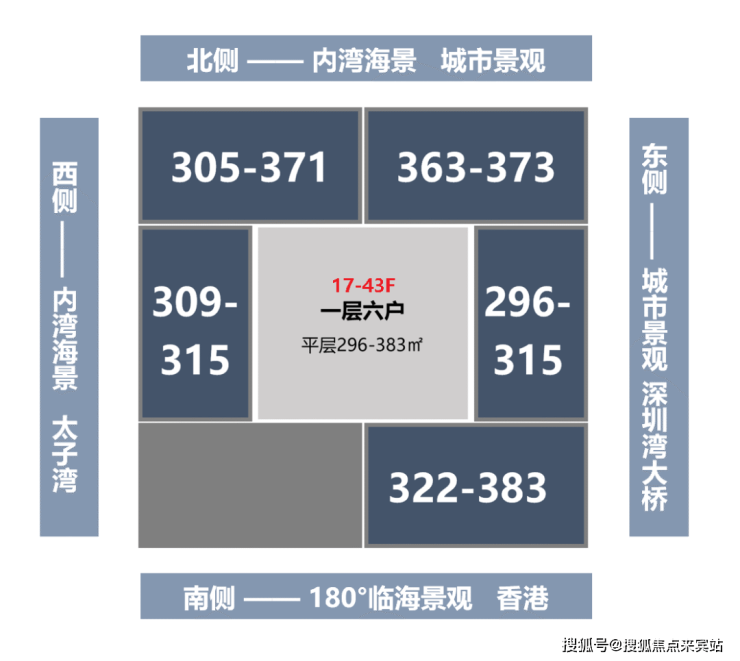 南、西、北,三面景观视野,看深圳湾海景、内海景、城市景观