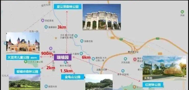 休闲配套:周边有大亚湾儿童主题乐园(建设中,直线距离项目约900m)、天然氧吧板嶂岭森林公园、亚公顶森林公园、红树林湿地公园、虎头山公园等资源。